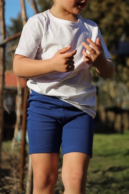 Blå rib shorts fra det danske mærke Birkholm. Kan bruges både som almindelige shorts, eller som underdel til kjoler eller nederdele. Lavet med masser af stræk i stoffet, så de sidder godt til uden at klemme. Super høj kvalitet, dejligt blødt stof og god å