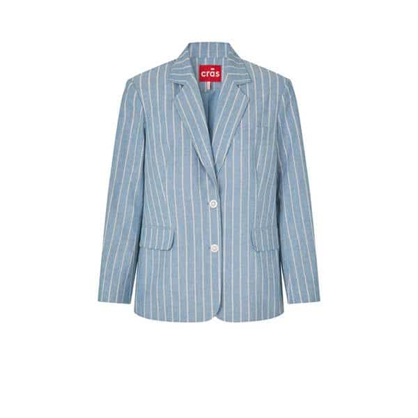 Klassisk skræddersyet blazer med karakter Milancras Blazer repræsenterer en moderne fortolkning af den klassiske blazer, designet til kvinden, der værdsætter et stilrent og sofistikeret udtryk med personlig karakter. De diskrete blå striber fremhæver blaz