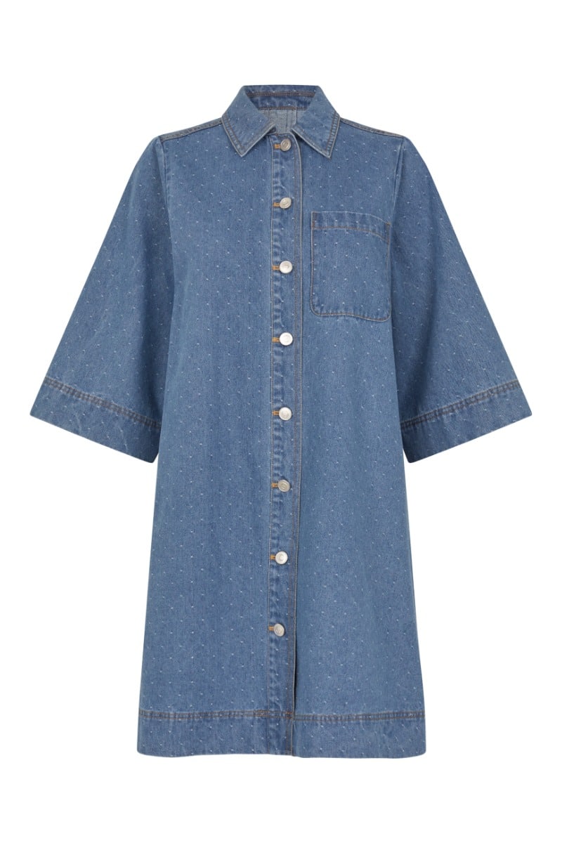 Den helt klassiske kjole i denim her fra Global Funk, men til denne sommer er den simpelthen landet i de sødeste polkaprikker! Kjolen er i en lækker, blød denim, med halvlange ærmer og så knappes den midtpå. Brug denne kjole til både sneakers, sandaler el