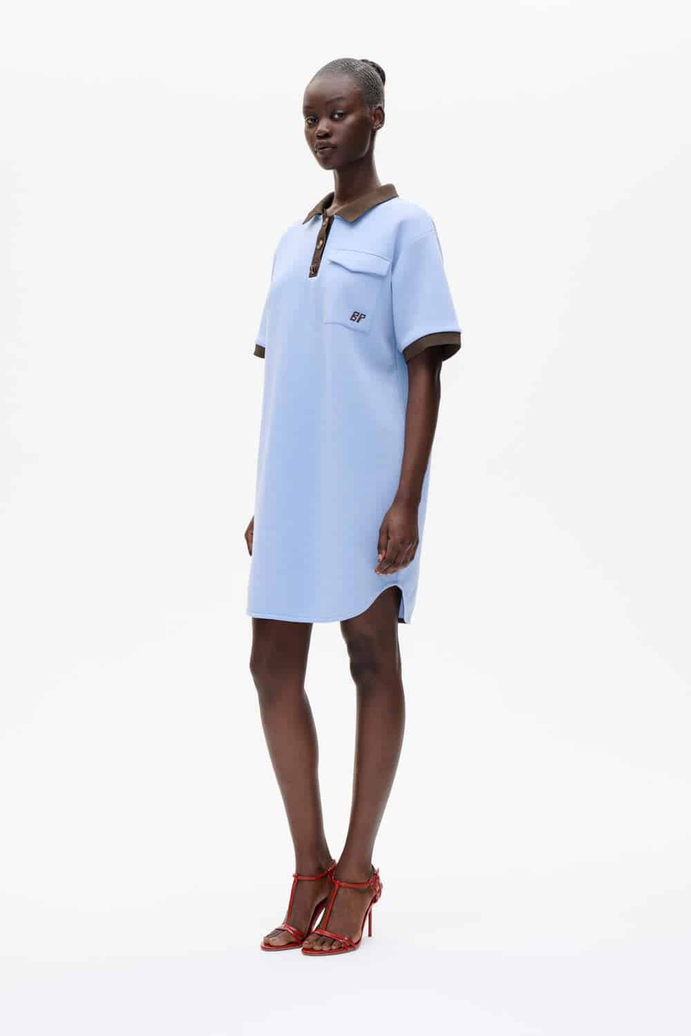 Joncy kjolen fra Baum und Pferdgarten er en enkel polokjole med en løs og afslappet pasform. Kjolen har korte ærmer og rundet sømkant, der giver et sporty men sofistikeret udtryk. På brystet finder du en praktisk brystlomme samt diskret broderet BP-logo,