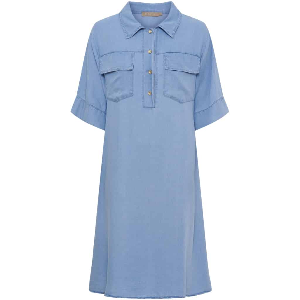 Casual kjole fra Marta Du Chateau i blød denim-look kvalitet. Modellen har krave, knaplukning foran og korte ærmer samt brystlommer, der giver et afslappet udtryk.En nem hverdagsfavorit, som kan styles med sneakers eller sandaler for et cool og afslappet
