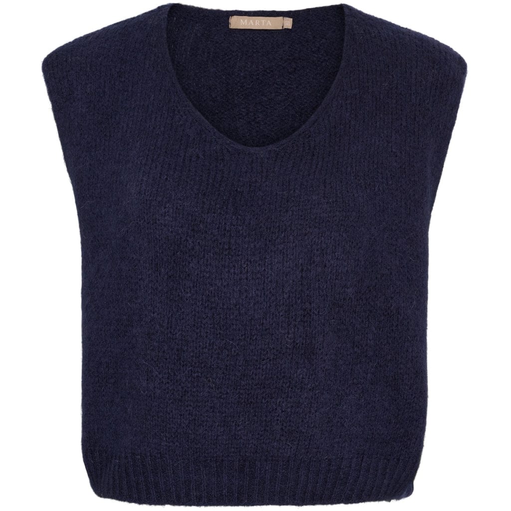 Sej vest med rund hals fra Marta. Vesten kan styles som den er med et par blazerbukser, eller over en langærmet kjole for et sejt lag-på-lag look. – Rund hals- Lag-på-lag- KlassiskMaterials:44% Akryl, 26% Poliamide, 20% Mohair, 10% LanaOnesizeLængde: ca.