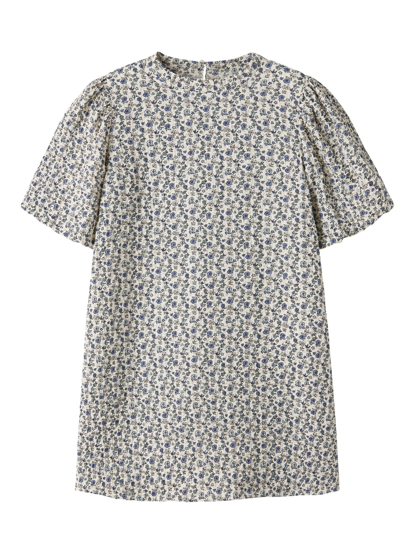 Fin kjole i vævet kvalitet med et flot all-over print. Kjolen har rund hals, korte ærmer og lukkes med knap og strop i nakken. Den let strukturerede overflade giver et klassisk look, mens den behagelige regular fit gør den perfekt til både hverdag og særl