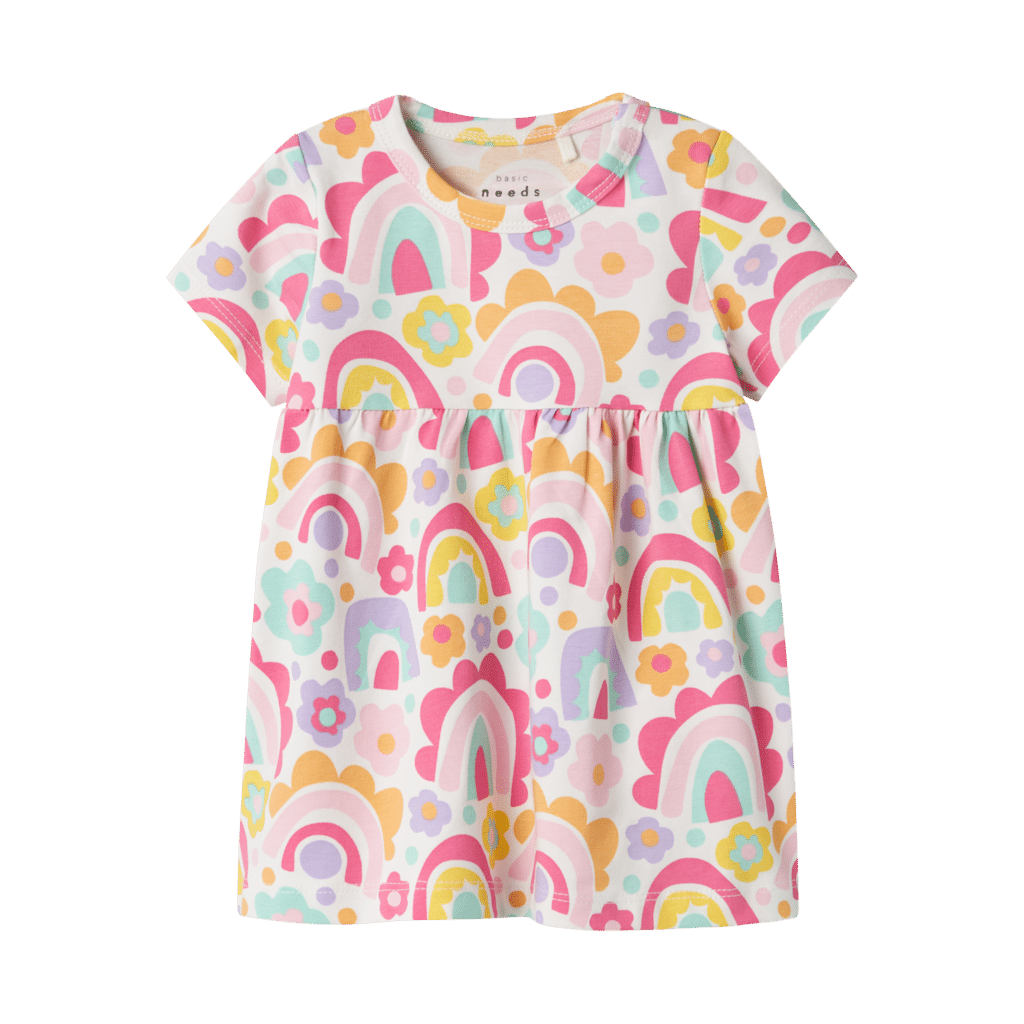 Super sød kjole fra name it. Den er med korte ærmer, er rund i halsen og er lavet i et blødt og lækkert materiale. Den har et sødt print over det hele.