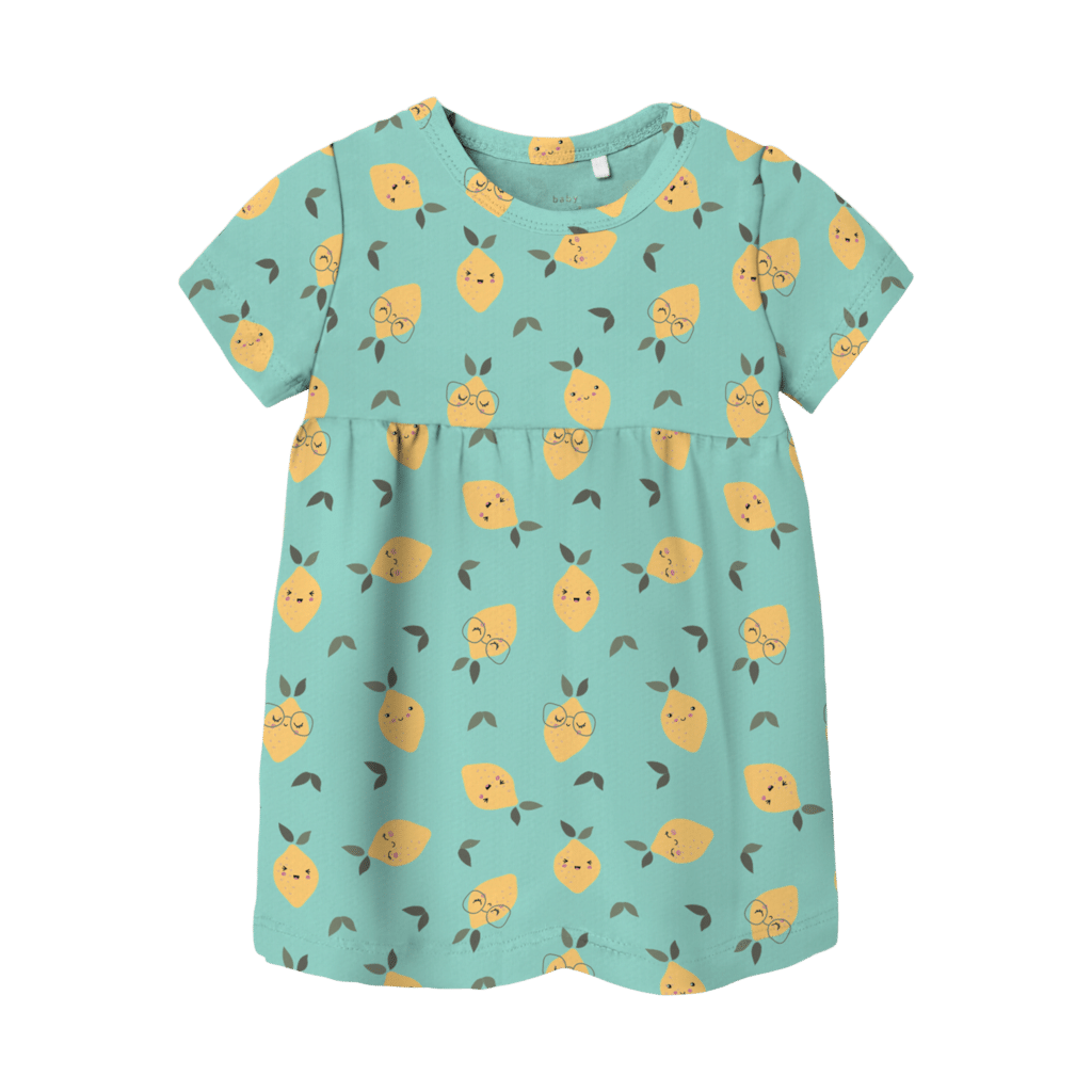 Super sød kjole fra name it. Den er med korte ærmer, er rund i halsen og er lavet i et blødt og lækkert materiale. Den har et sødt print over det hele.