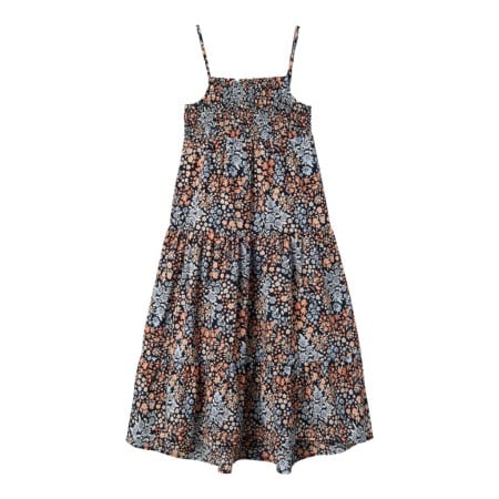 Super fin strop kjole fra name it. Det er en maxi kjole med lagdelt effekt. Kjolen er med tynde stropper der kan justeres og så har den det fineste blomsterprint over det hele.