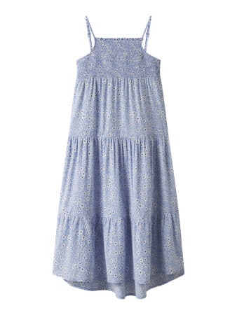 Super fin strop kjole fra name it. Det er en maxi kjole med lagdelt effekt. Kjolen er med tynde stropper der kan justeres og så har den det fineste blomster print over det hele.