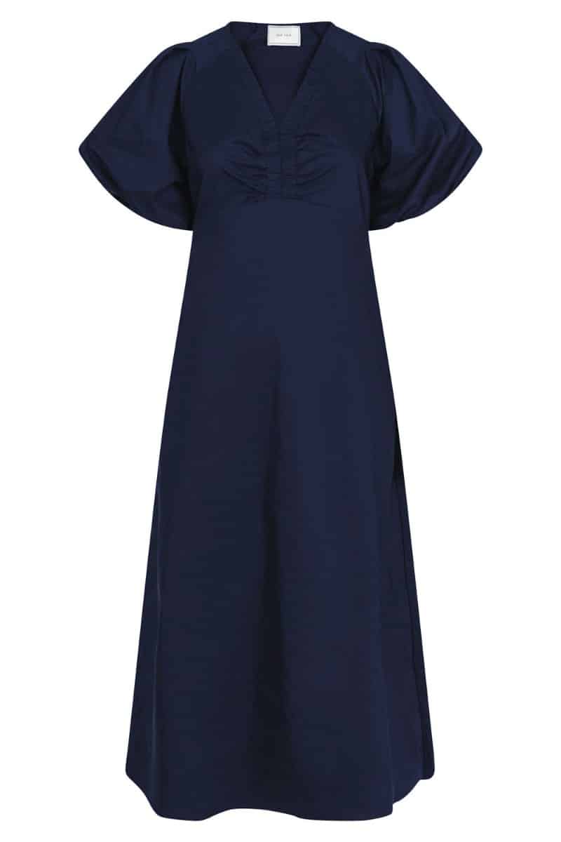 En fin og nem kjole fra Neo Noir i en helt mørk navy farve. Kjolen har et flot A-snit samt en smuk udskæring og volumiøse ærmer. Kjolen kan let styles til forskellige anledninger.Â