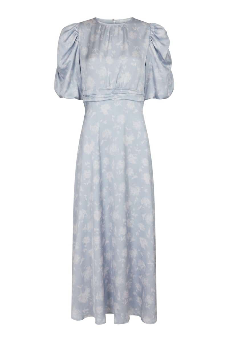 En smuk feminin kjole fra Neo Noir er landet med de smukkeste blå blomster print. Den er lang i modellen og i dette satin look. Derudover er der elastik i taljen og giver denne smukke figur. Den er fin til en fest med et par stiletter eller sammen med en
