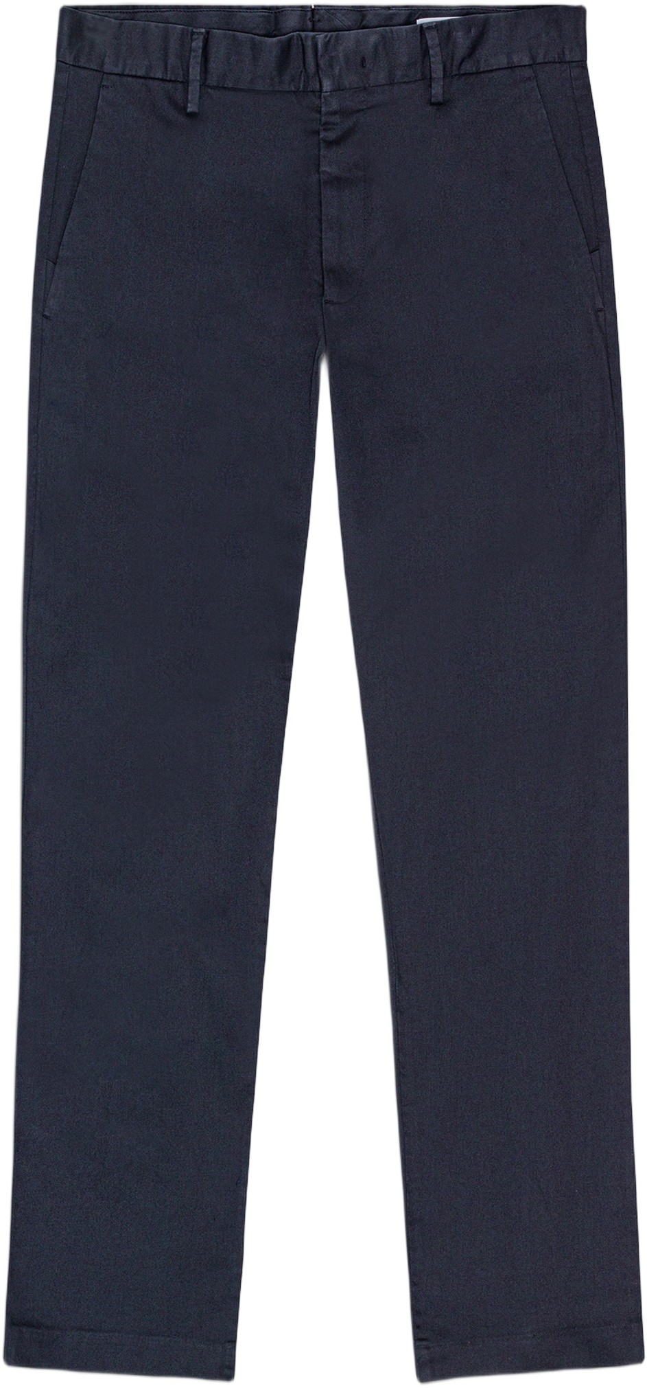 Theo er en chino i hjertet, men med de formelle elementer i en kjole bukser. Fremstillet i børstet BCI-bomuld fra den italienske mølle Progetto Uno. Disse alsidige bukser med mellemhøj talje har en indsnævret pasform. Afsluttet med en sprød krølle ved ben